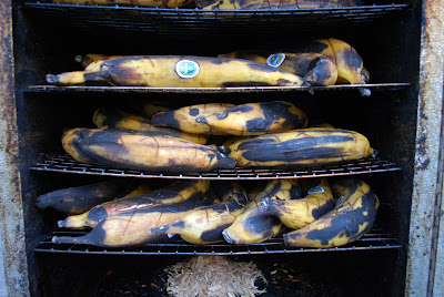 My newest addiction! We made plantain for the Haitian fundraiser. The concept of the smoking was very last minute. Everything in the kitchen should always have the chance to see a smoker and this time we stumbled upon something great! Not sure it has been done before but it is fantastic! We finish it with a little chili lime salt/sugar mixture. Depending on how smoky you want it you can score the plantains skin or smoke it peeled.