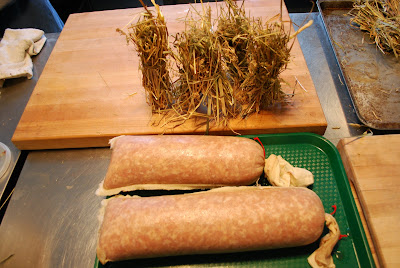 We've never used suckling pig in a salami before but when we had some extra pieces we didn't have any particular use for we thought why not? It has such a distinctive flavour and since we had the hay from the farm it comes from we decided to smoke it with its own hay.